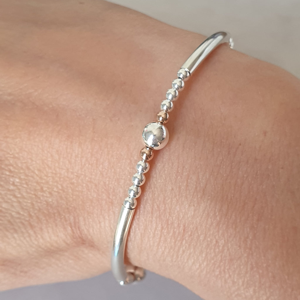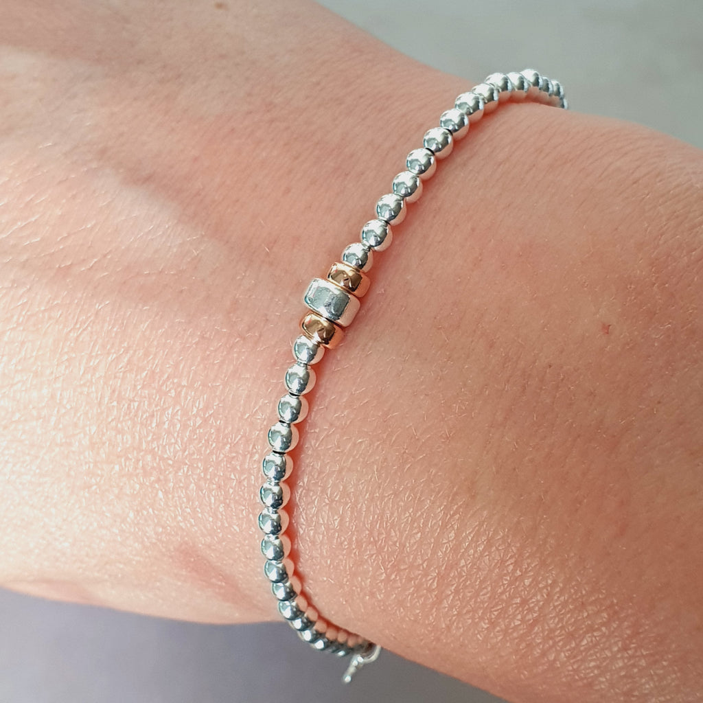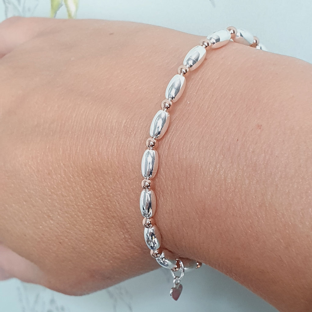 Sterling Silver & Rose Gold Rondelle Bracelet