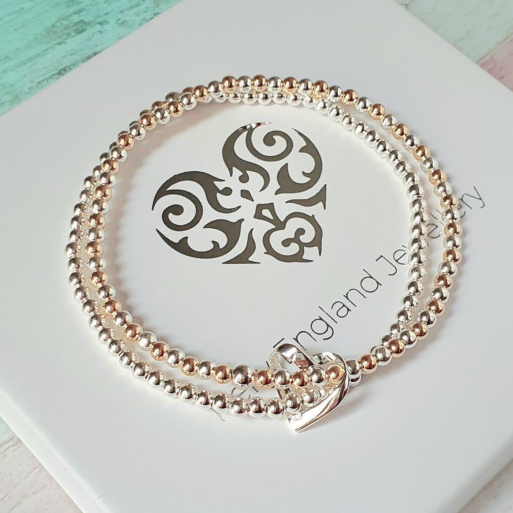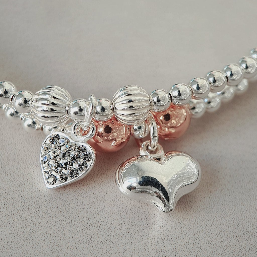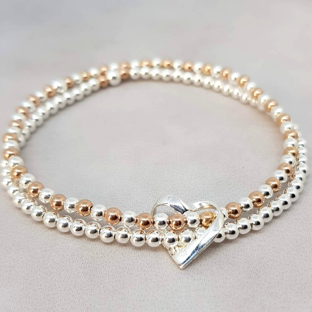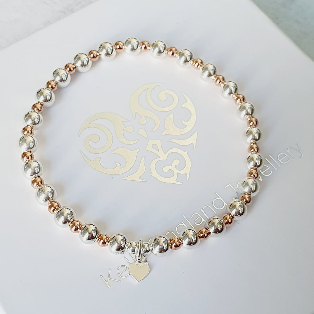 Silver & Rose Gold Stretch Bracelet With Mini Heart
