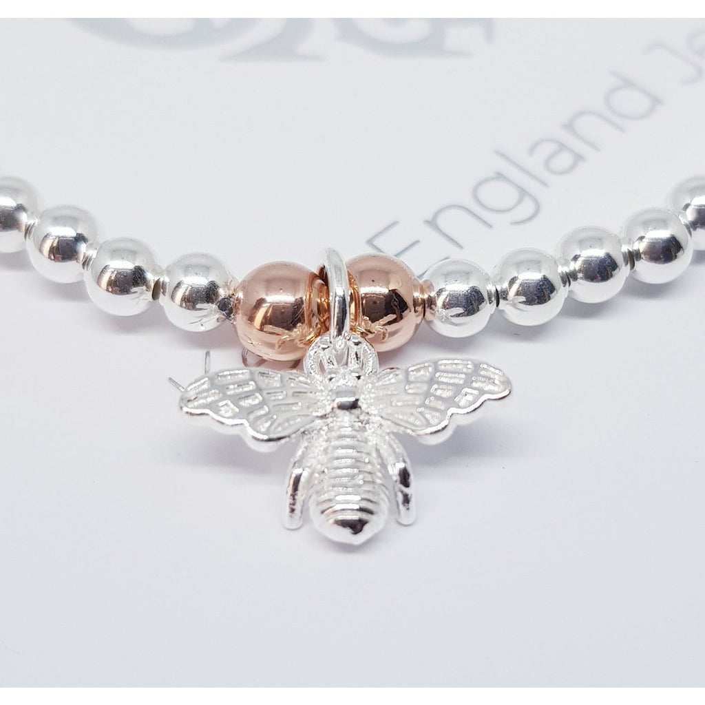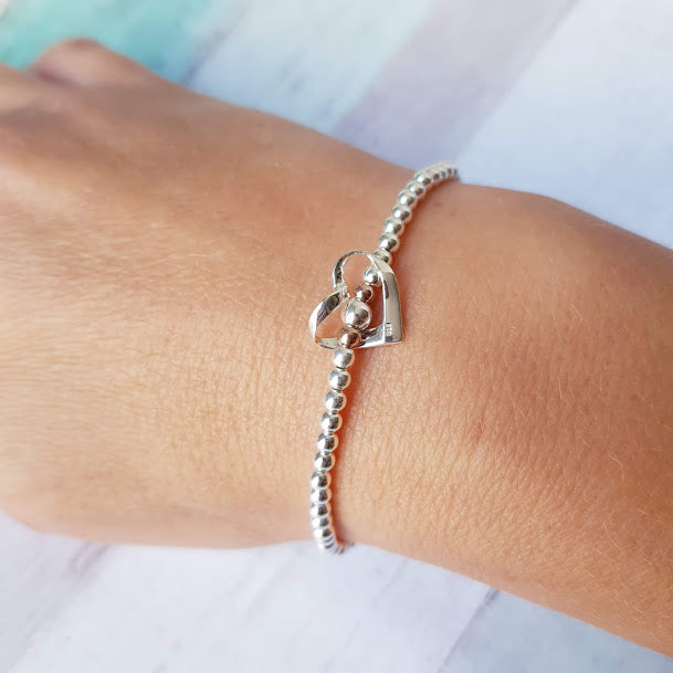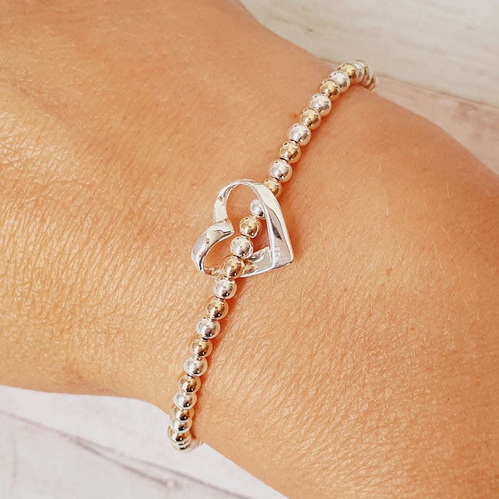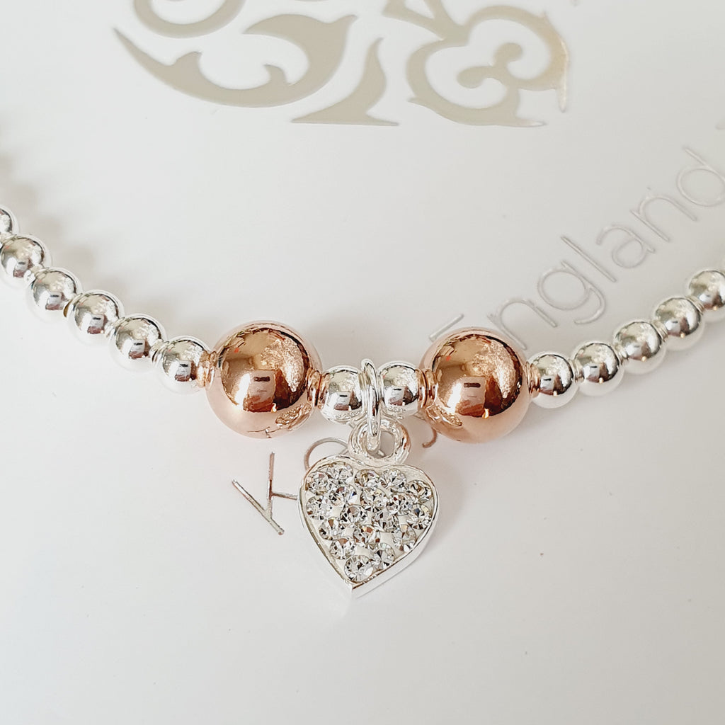 Silver & Rose Gold Stretch Bracelet With Mini Heart