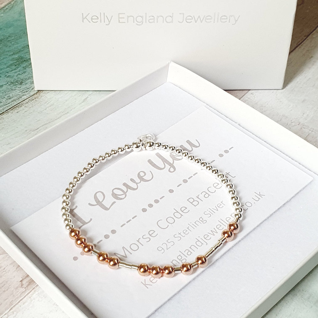 I love you! Silver & Rose Gold Morse Code Bracelet