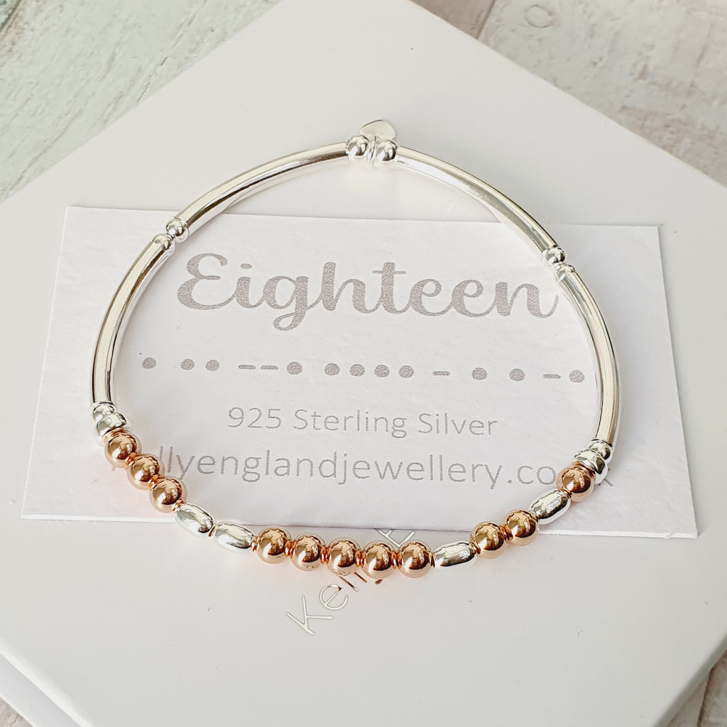 18th Birthday! Silver & Rose Gold Beaded Bracelet